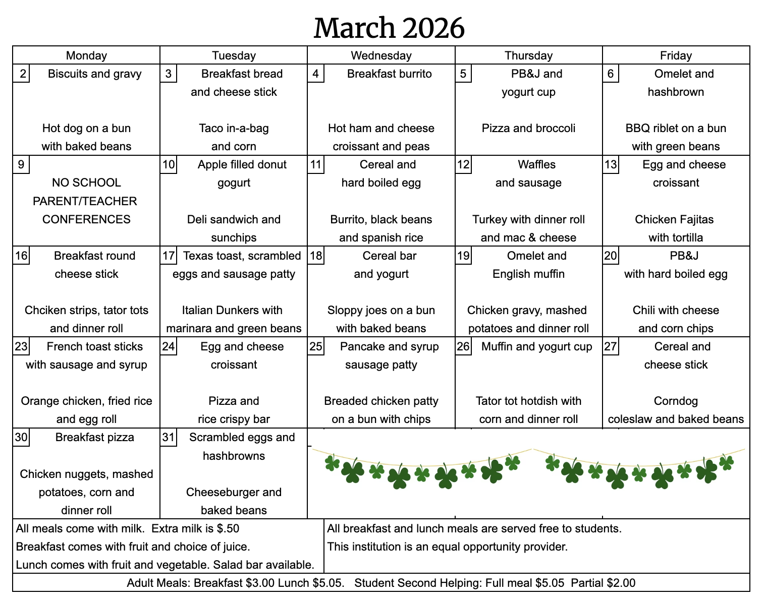 Tutor/Mentor meets every Wed. after school for homework and study help. Parent/Teacher Conferences are Monday, March 9th. There will be no school that day.