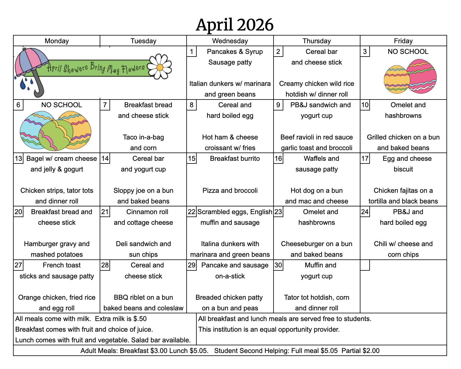 Tutor/Mentor meets every Wed. after school for homework and study help. There is no school April 3rd or 6th for Easter weekend. Spring Spotlight Night is April 29th. Early Childhood Screening will be held on April 8th. Call the Health Office to sign up.